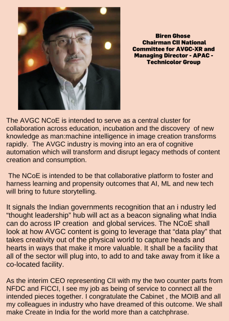 The establishment of the NCoE in AVGC-XR has long been a policy vision of the Ministry of Information & Broadcasting, aiming to elevate India’s prowess in these fields to global standards